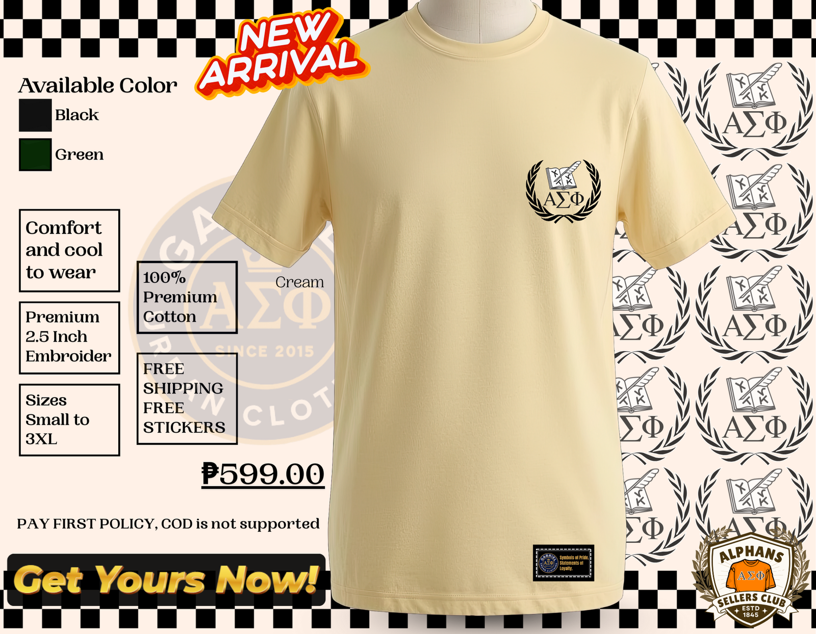 Stand Out in Style with the Alpha Sigma Phi Embroidered T-shirt